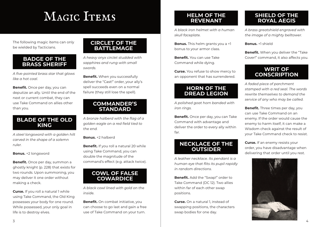 - Made the "Commander's Standard" magic item effect standard for Take Command. Nat 20s now let you deliver a free order to anyone. It felt fun and natural at the table to have something extra happen on a crit.