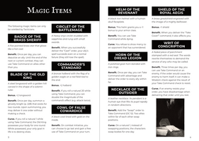 - "Commander's Standard": Changed magic item benefit to make crits on Take Command also double the order's magnitude. Meant to echo how spell crits work.